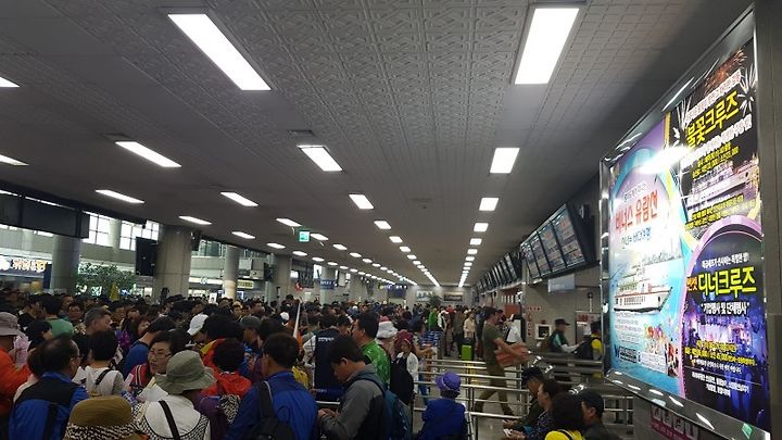 연안부두 대합실은 그야말로 인산인해.