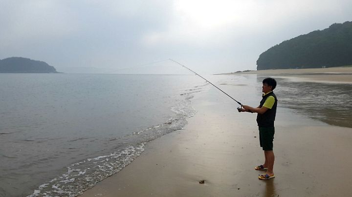 저 멀리 낚시를 내던진다. 고기야 고기야~~ 많이 잡혀라!