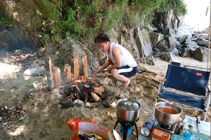 사승봉도는 무인도지만, 관리하는 이모님이 계신다. 정해진 소정의 입도료를 내야 하고, 허가를 받아야 한다. 덕분에 환상적인 공간에 잘 정돈된 텐트자리가 마련되어 있다. 그 곳에 2인용 작은 텐트와 내 원터치텐트를 설치했다.