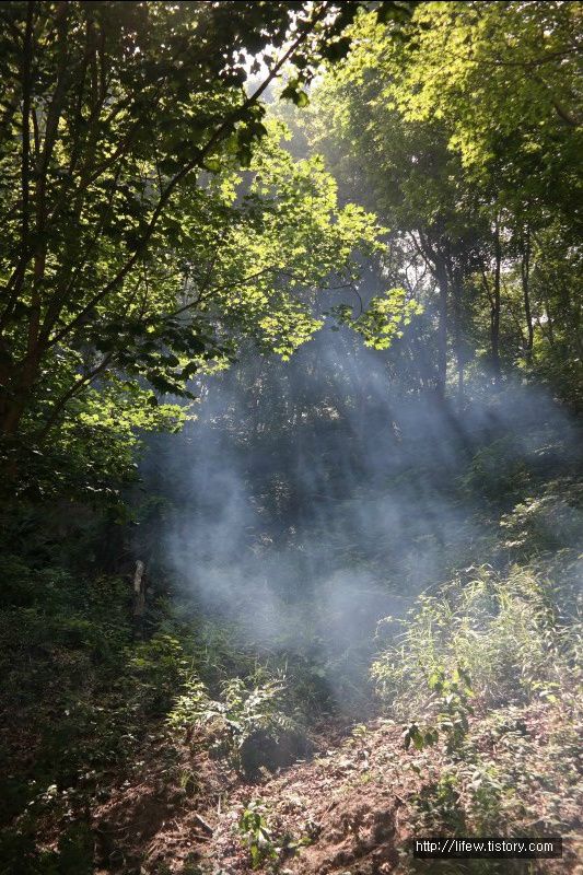 연기가 올라가자 해가 비친 곳이 예술장면이 연출된다.