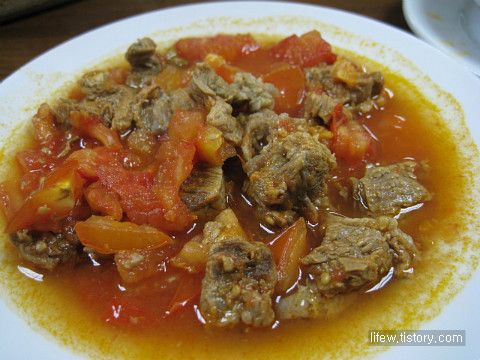 <고기와 토마토를 같이 삶은 케밥의 일종. 새콤하고 담백해서 우리 입맛에도 잘 맞는다.>
